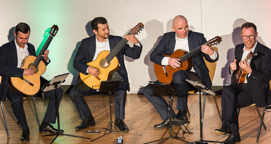 [04.10.2025] In einem beeindruckenden Konzert in der Aula des Archigymnasiums hat das Baltic Guitar Quartett seine Vielseitigkeit und künstlerische Qualität eindrücklich unter Beweis gestellt. Dabei kam sogar die Ukulele zum Einsatz… Gerahmt wurde das Konzert im ersten Teil vom Mittelstufenensemble der Musikschule und im 2. Teil l hatte auch das Soester Gitarrenensemble seinem Auftritt.